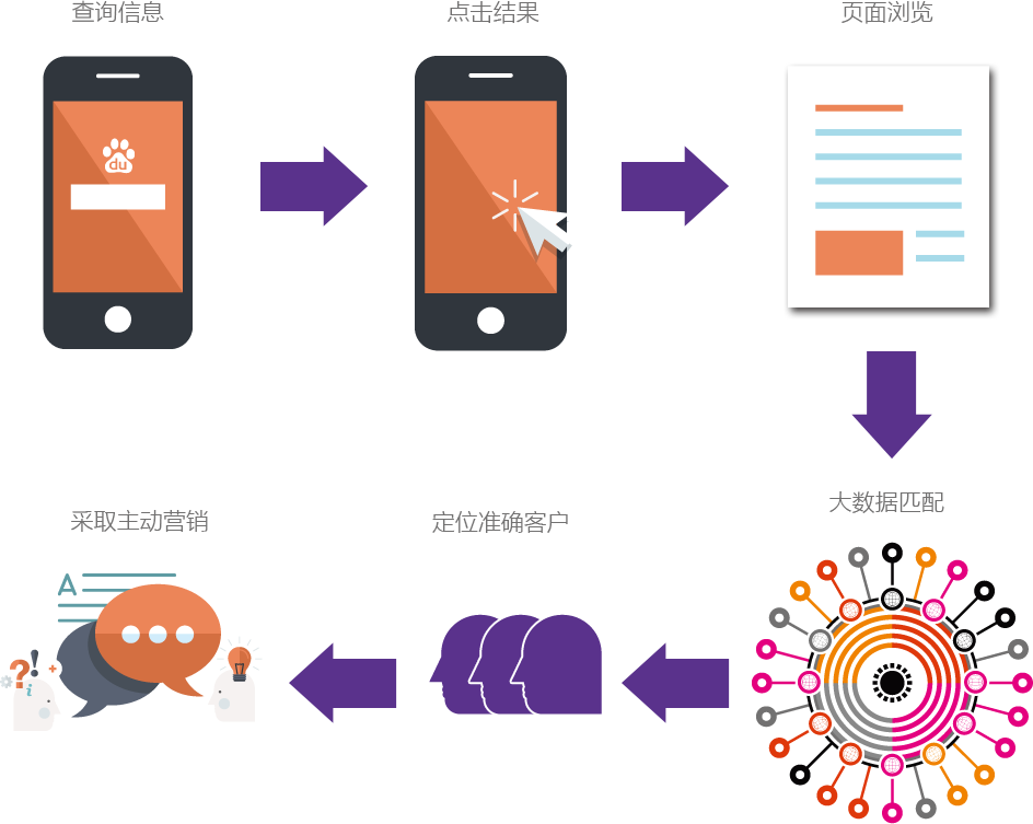 用大數據和技術直接發掘出搜索者和潛在用戶的關聯,移動端能獲取到搜索者設備信息,開展主動營銷。